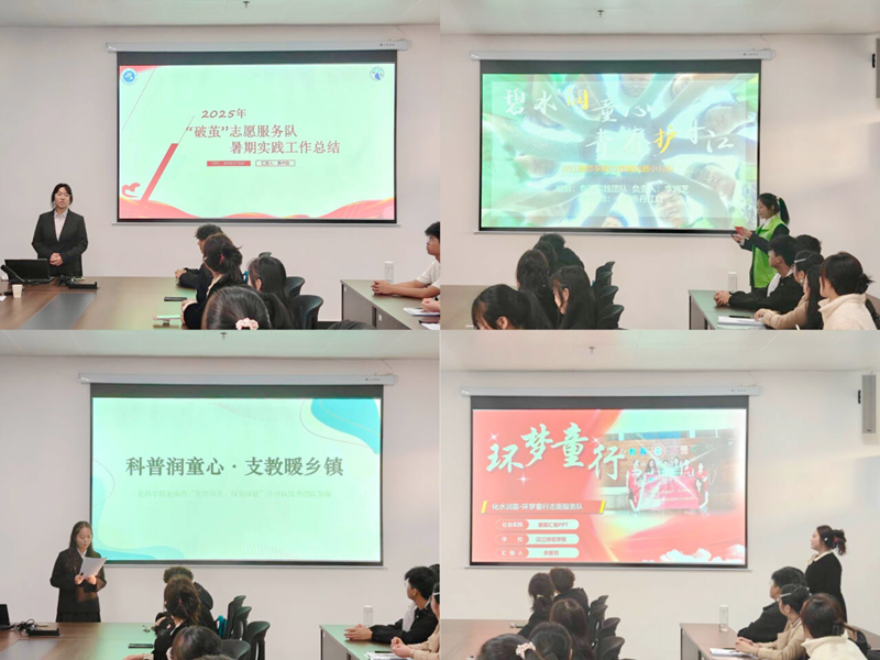 会议首项议程为暑期社会实践优秀团队成果展示。高中因同学代表“破茧”志愿服务队率先汇报,随后华雯萱同学代表化环学院赴郧西“化韵环生,‘碳’索绿能”支教小分队、李欣同学代表秦巴百草学堂小分队、李润芝同学代表“九色鹿”科普小分队、李晋羽同学代表化水润苗·环梦童行志愿服务队依次登台,通过PPT系统呈现各团队的实践内容、亮点成果与经验感悟,展现了化环学子在不同实践领域的担当作为。